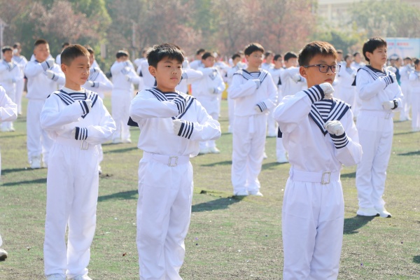 高中部的學子們表演的《旗幟下的征程》,則在紅旗舞動下,擺出“新中銳、新目標、新征程”以及“26”的字樣,詮釋了信念與榮耀的力量。