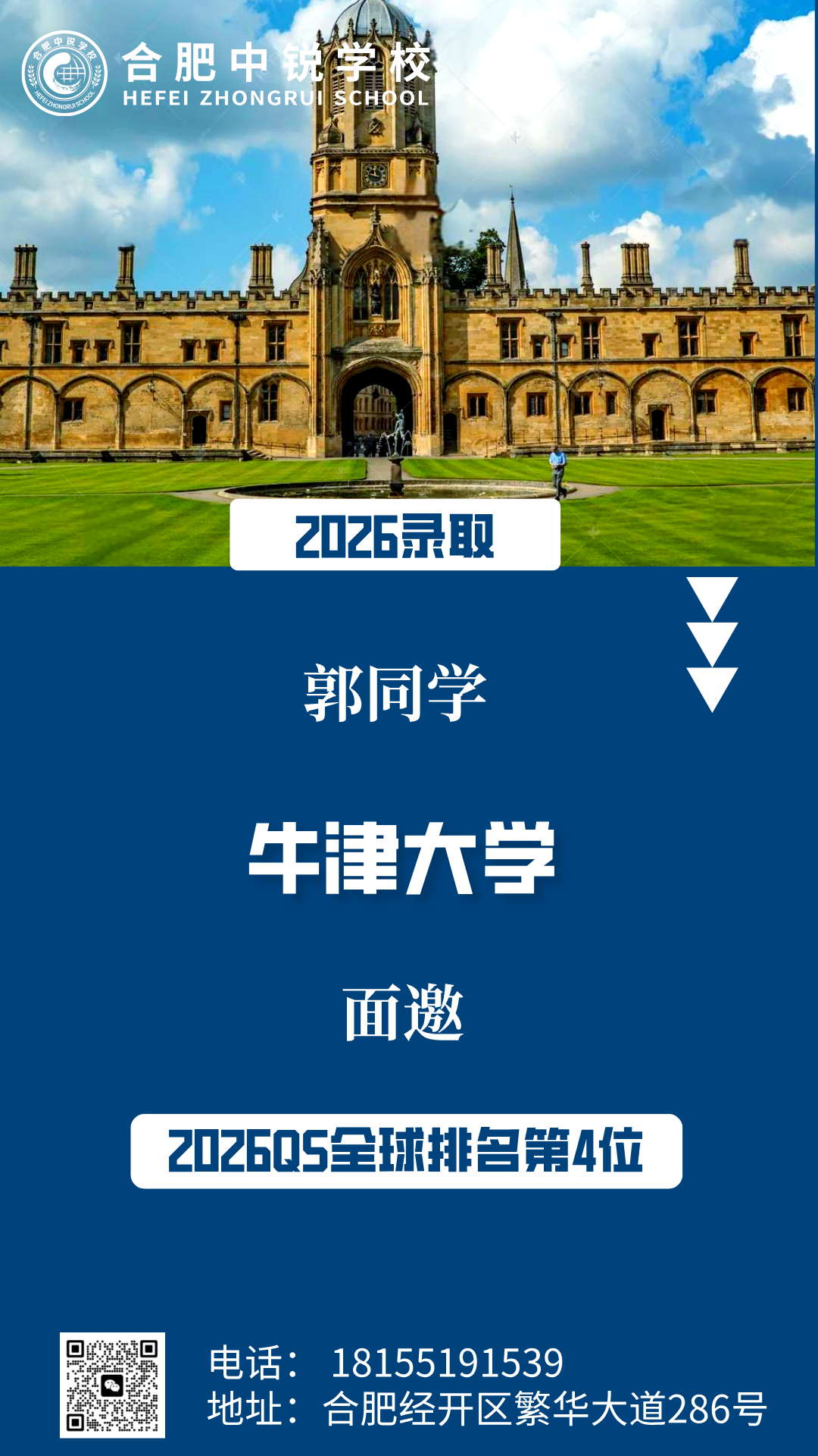 喜報頻傳!我校學子在2026年牛津大學申請中斬獲重磅面試邀請,從全球眾多申請者中脫穎而出,成功叩響這所QS頂尖學府的學術大門!